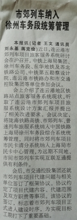 5月9日,連云港市域列車項(xiàng)目旅客服務(wù)系統(tǒng)研討會(huì)在滬召開。會(huì)議決定,將隴海鐵路高鐵、市域列車、普速列車旅服系統(tǒng)納入中國(guó)鐵路上海局徐州車務(wù)段綜合系統(tǒng)統(tǒng)籌管理,同時(shí)將市域列車項(xiàng)目市民卡清分系統(tǒng)納入上海局市民卡中心管理,為遠(yuǎn)期不同地、市間市域列車實(shí)現(xiàn)互聯(lián)互通提供有利條件。