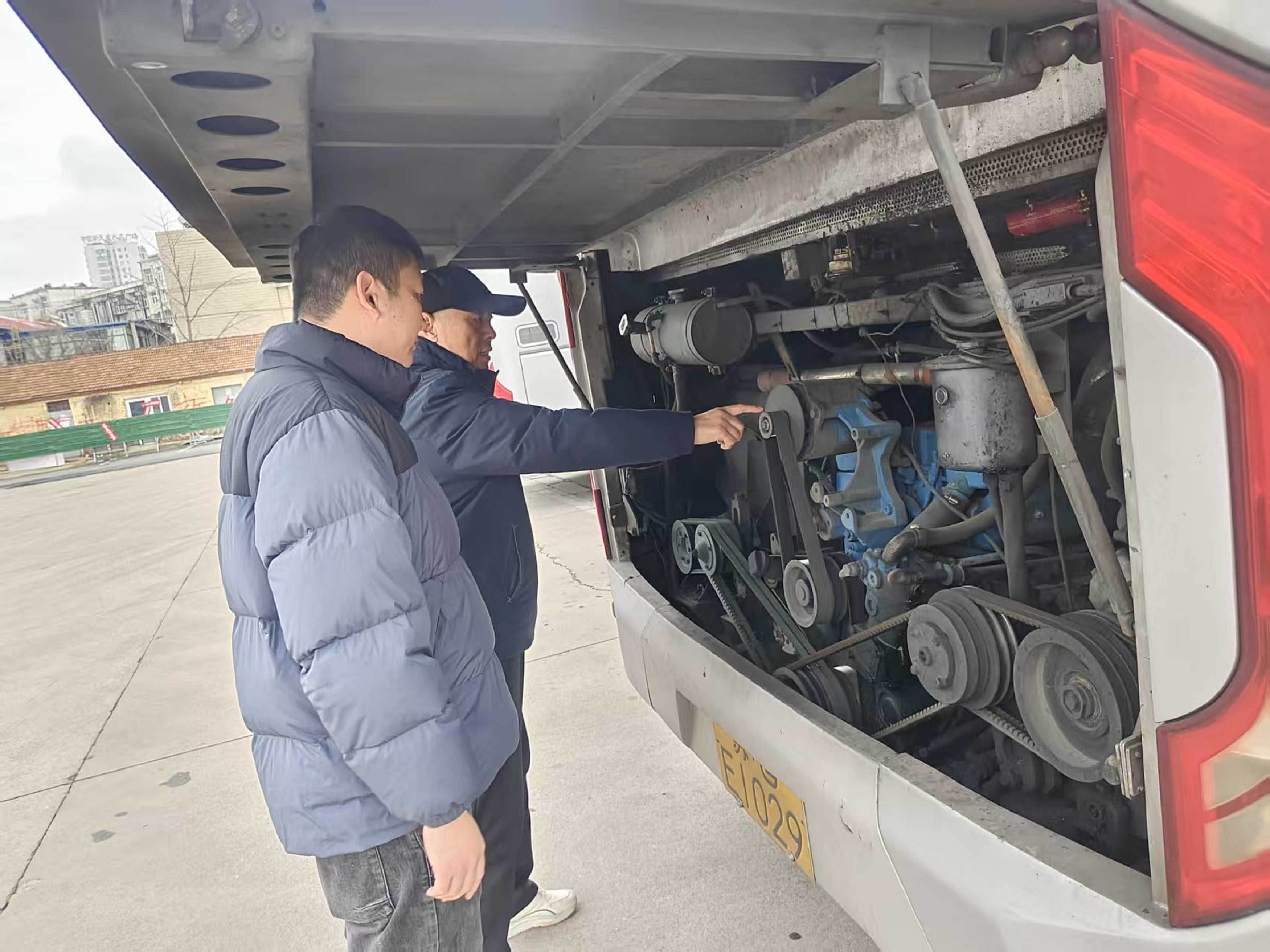 此次排查圍繞車輛核心安全部件,實行全方位、無死角細致查驗。檢查人員重點對車輛制動系統(tǒng)性能、輪胎磨損及胎壓狀況進行嚴格核查;仔細檢查車載滅火器、安全帶、安全錘等應(yīng)急設(shè)施是否齊全有效;全面檢測車輛燈光照明、信號指示功能,細致排查線路老化、裸露等隱患;同時對發(fā)動機艙、油液液位、管路連接等關(guān)鍵部位逐一檢查,確保車輛技術(shù)狀態(tài)達標。排查過程中,工作人員全程規(guī)范登記、閉環(huán)管理,堅決杜絕 “帶病車輛”上路運營。