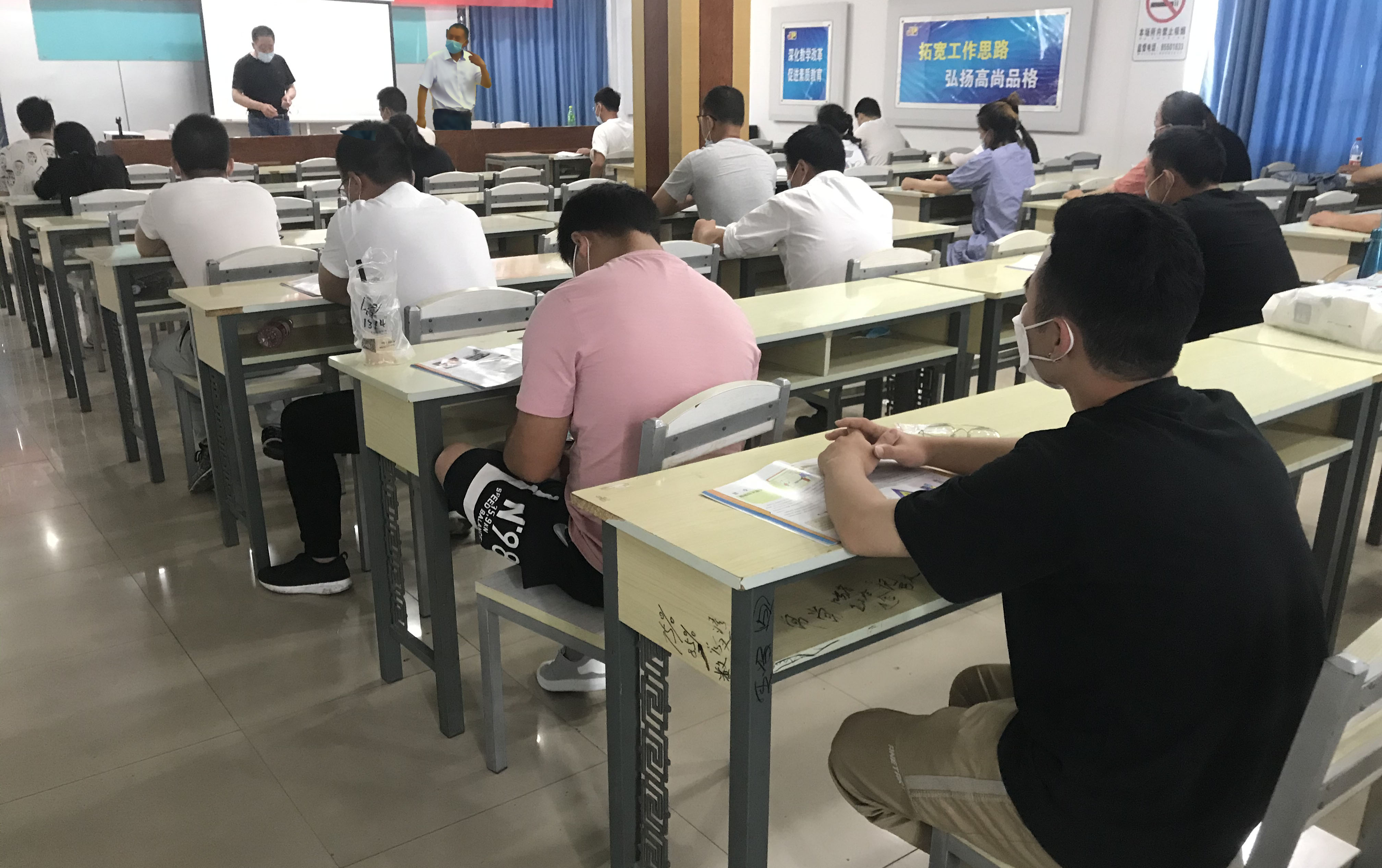 為做好培訓(xùn)期間的疫情防控工作,保障學(xué)員的健康和培訓(xùn)順利進(jìn)行,提前兩日對(duì)校園及教室進(jìn)行全面消殺,控制教室人員密度,保持1米間隔,向?qū)W員講解疫情期間開(kāi)班注意事項(xiàng),期間,每天對(duì)進(jìn)門學(xué)員進(jìn)行體溫測(cè)量并做好登記,每名到校學(xué)員必須出示蘇康碼,全程佩戴口罩,在保持良好課堂秩序的同時(shí)確保校園疫情防控取得實(shí)效。