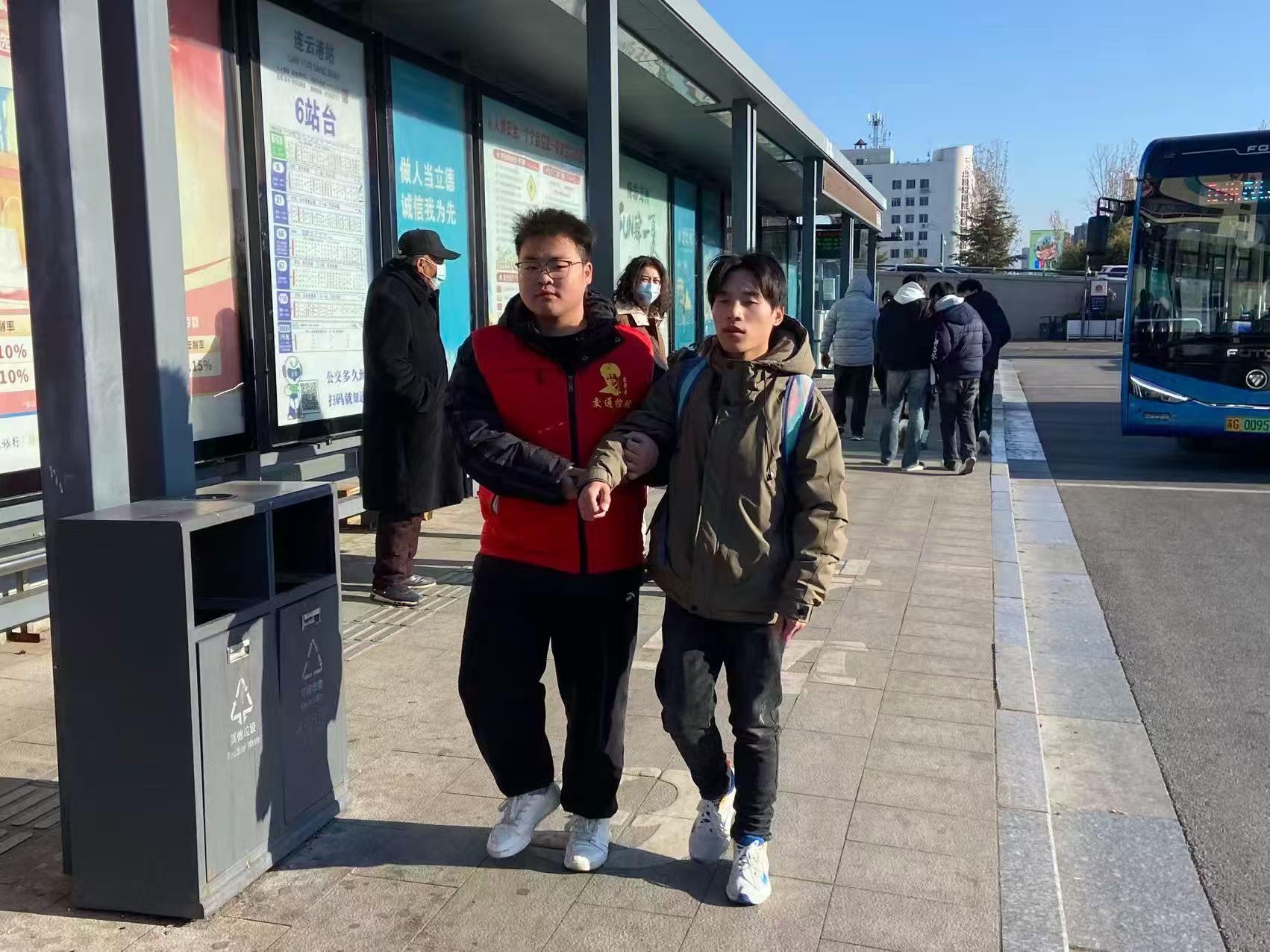見到旅客,志愿者主動上前攙扶,一路耐心引導(dǎo)前行,時時輕聲提示腳下路況、細(xì)致描述周邊環(huán)境,用溫暖話語化解旅客身處陌生環(huán)境的不安。從高鐵站出口到公交站臺的這段路,因志愿者的貼心陪伴變得格外安心順暢。抵達(dá)站點后,志愿者提前與公交司機(jī)溝通,清晰說明旅客的下車地點及注意事項,小心翼翼將旅客扶至座位,并再三叮囑司機(jī)多加關(guān)照。“有你們在,我心里踏實多了,出門再也不犯愁了!”盲人旅客感動地連連道謝。