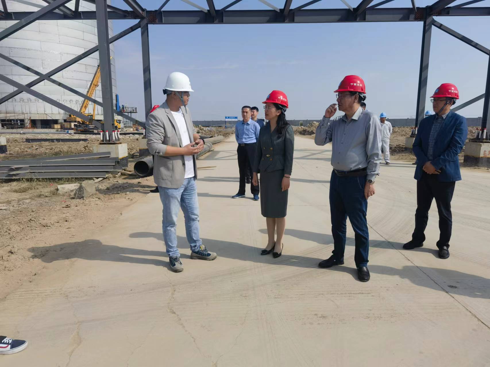 曹明麗一行先后到項(xiàng)目各建設(shè)現(xiàn)場(chǎng)進(jìn)行查看,聽(tīng)取了LNG儲(chǔ)配站項(xiàng)目負(fù)責(zé)人茆中磊關(guān)于項(xiàng)目建設(shè)情況及后期建成后經(jīng)營(yíng)模式的匯報(bào),曹明麗詳細(xì)詢問(wèn)了項(xiàng)目規(guī)劃、建設(shè)進(jìn)度及項(xiàng)目推進(jìn)過(guò)程遇到的困難和問(wèn)題。
