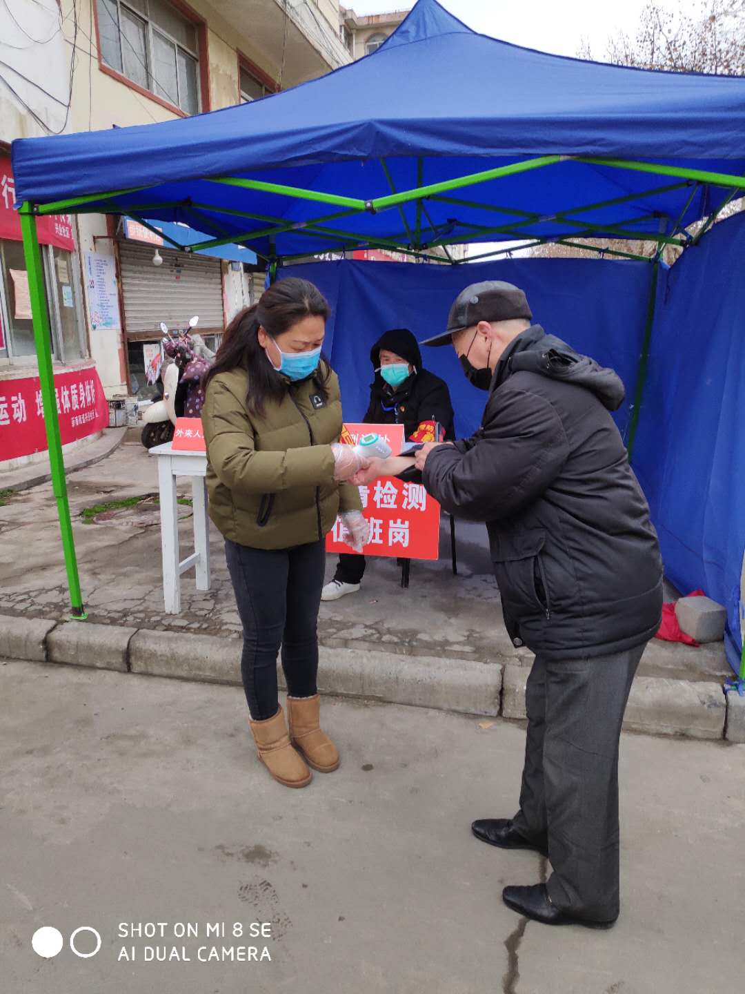 “請(qǐng)您出示本小區(qū)出入證件”、“給您測(cè)一下體溫”、“給您噴灑消毒水”、“外來(lái)人員請(qǐng)您進(jìn)行登記”,這是她每天的工作內(nèi)容,無(wú)論刮風(fēng)下雨還是晴冬暖陽(yáng),在小區(qū)出入口一站就是好幾個(gè)小時(shí),從報(bào)名至今,她每天都堅(jiān)守在這個(gè)特殊的崗位上,為社區(qū)的家人們提供無(wú)償?shù)姆?wù),無(wú)怨無(wú)悔。小區(qū)里的居民由于長(zhǎng)期居家不能隨便出門(mén),有煩躁的情緒,有些老人會(huì)因?yàn)椴焕斫舛慌浜纤墓ぷ鳎龝?huì)耐心的對(duì)他們說(shuō)明原由。小區(qū)里來(lái)往的熟人會(huì)問(wèn),你怎么在這里呀,她總是說(shuō)“我是一名共產(chǎn)黨員,我要為人民服務(wù)”。
