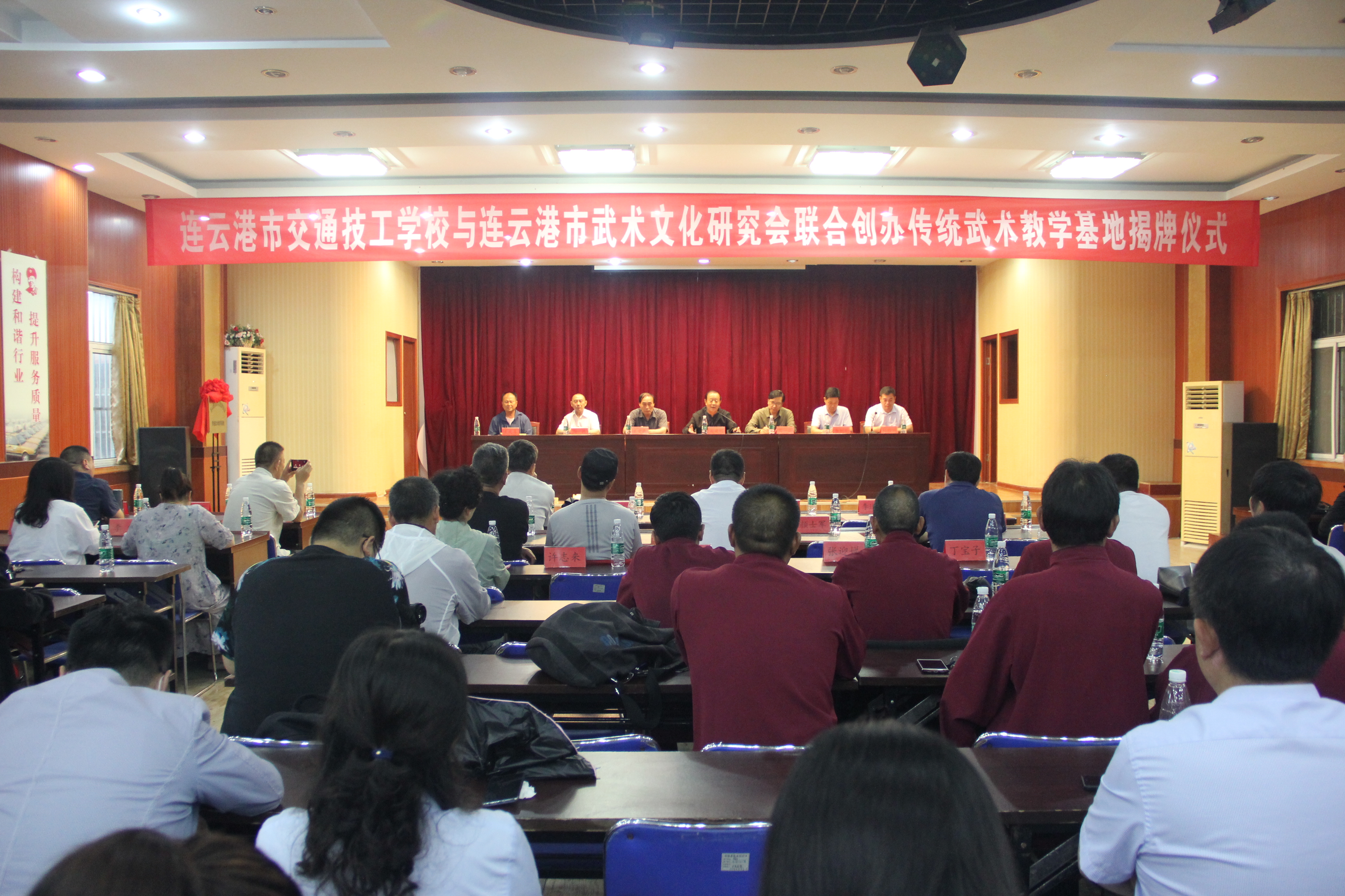 2020年7月12日,連云港市交通技工學(xué)校與連云港市武術(shù)文化研究會聯(lián)合舉辦“傳統(tǒng)武術(shù)教學(xué)基地”揭牌儀式。原連云港市人大副主任、市武術(shù)文化研究會名譽主席謝建明,市交通控股集團副總經(jīng)理李樹軍,市社科聯(lián)副主席周一云,市民政局社團處處長王愛民,交培公司黨委書記、總經(jīng)理楊維洲,市武術(shù)文化研究會會長王慶喜,中國時代先鋒論壇秘書長周德等領(lǐng)導(dǎo)出席儀式,交培公司員工參加儀式。儀式由楊維洲主持。