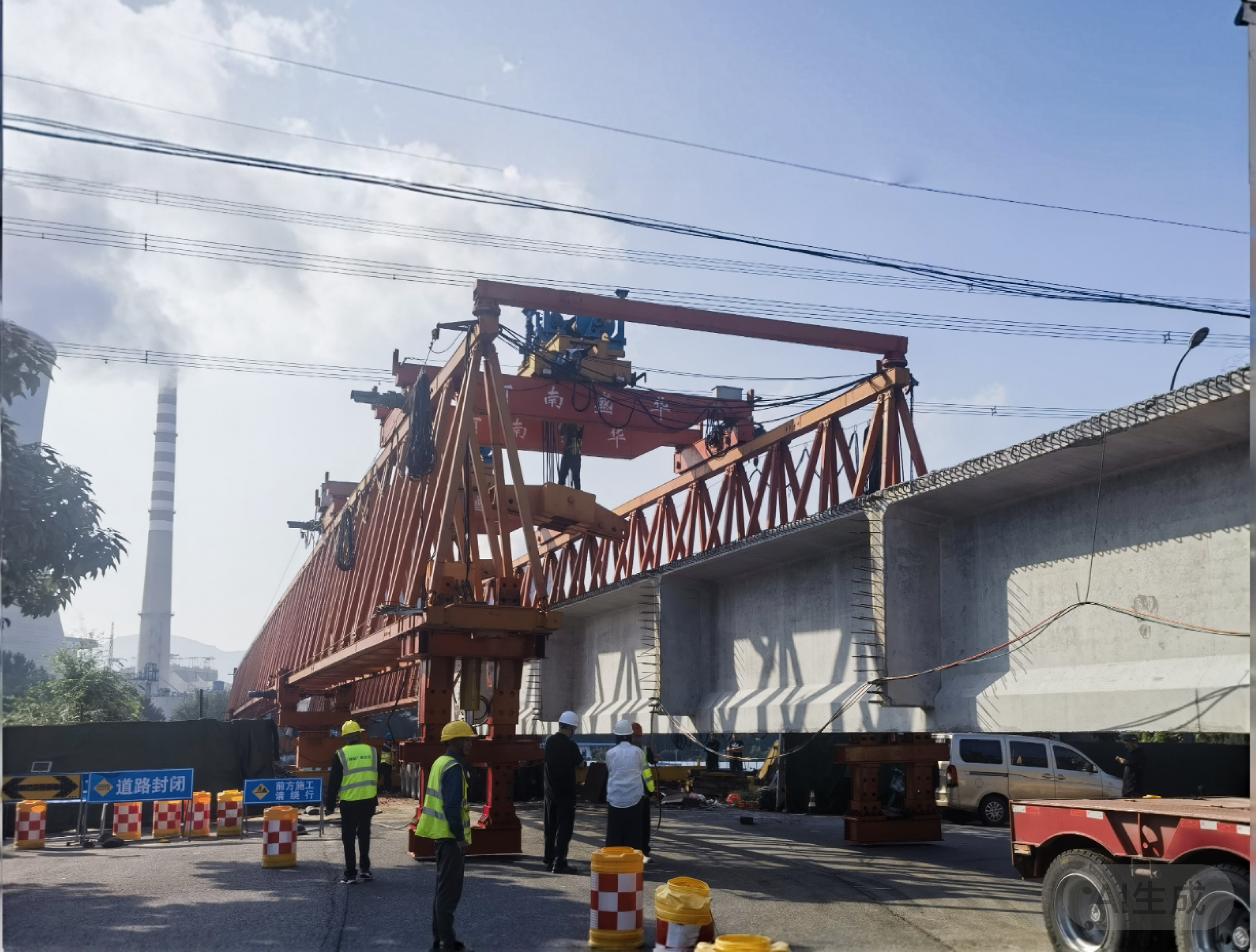 此次成功架設(shè)的首片梁為邊梁,位于橋梁最外側(cè),其線型控制和安裝精度直接關(guān)系到后續(xù)橋面系的施工質(zhì)量和整體橋型美觀,是全線梁板架設(shè)的關(guān)鍵控制點(diǎn)。為確保萬無一失,項(xiàng)目部周密部署,對架橋機(jī)進(jìn)行了空載試運(yùn)行和嚴(yán)密檢查,并對現(xiàn)場作業(yè)人員展開詳細(xì)的技術(shù)交底與安全培訓(xùn)。在整個(gè)起吊、平移、落梁過程中,測量人員全程跟蹤監(jiān)測,操作人員精準(zhǔn)微調(diào),最終實(shí)現(xiàn)毫米級(jí)的高精度安裝。