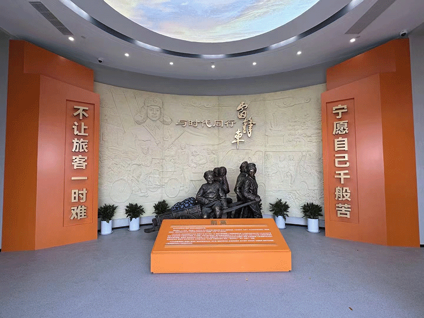 “雷鋒車”事跡陳列館位于江蘇省連云港市新浦汽車總站客運(yùn)站二層,面積由原來的300平方米增至614平方米,展覽線路長(zhǎng)度約230米。整個(gè)展館分為在學(xué)雷鋒大潮中誕生、在改革開放中發(fā)展、在新時(shí)代中奮進(jìn)、在傳承弘揚(yáng)中光大四個(gè)部分。根據(jù)時(shí)代變遷中“雷鋒車”組的成長(zhǎng)脈絡(luò)和感人故事,通過標(biāo)志性圖片、數(shù)據(jù)圖標(biāo)、音像視頻、實(shí)物文物和場(chǎng)景造型附以說明文字等多種方式,全方位立體展示“雷鋒車”組60年全心全意為人民服務(wù)的先進(jìn)事跡,讓參觀者擁有更加直觀的觀展體驗(yàn)。