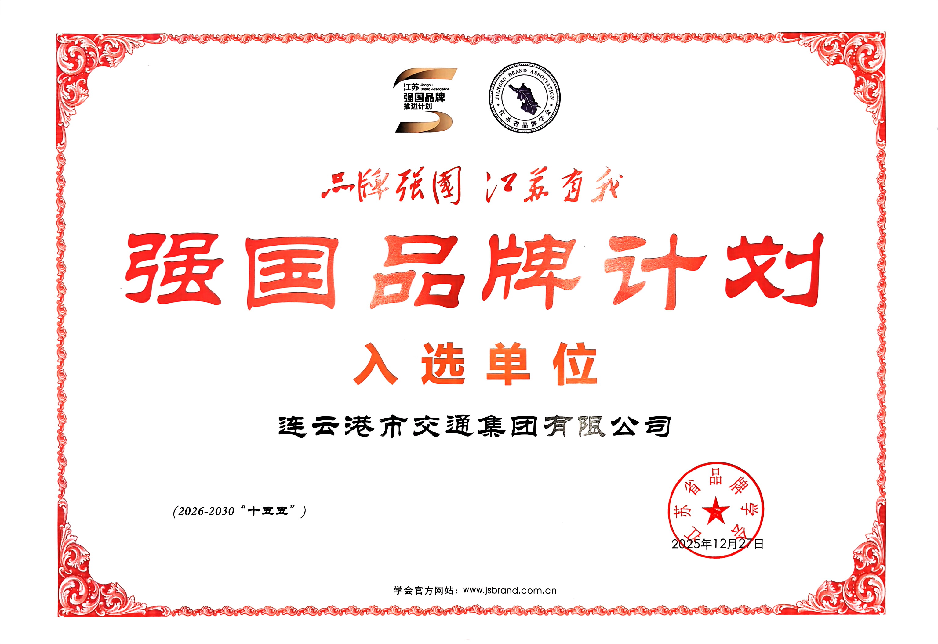 交通集團(tuán)始終將品牌建設(shè)融入戰(zhàn)略全局,深耕交通基建、民生服務(wù)、產(chǎn)業(yè)融合等領(lǐng)域,以創(chuàng)新驅(qū)動強(qiáng)根基、以責(zé)任擔(dān)當(dāng)樹形象,積累了廣泛社會贊譽(yù)。此次入選是對集團(tuán)過往發(fā)展的肯定,更是未來前行的動力。集團(tuán)將以此次榮譽(yù)為契機(jī),深化品牌戰(zhàn)略引領(lǐng),對標(biāo)一流、深耕主業(yè),將品牌理念融入生產(chǎn)經(jīng)營各環(huán)節(jié),持續(xù)提升品牌影響力與核心競爭力,為品牌強(qiáng)國、“品質(zhì)江蘇”建設(shè)注入動能。
