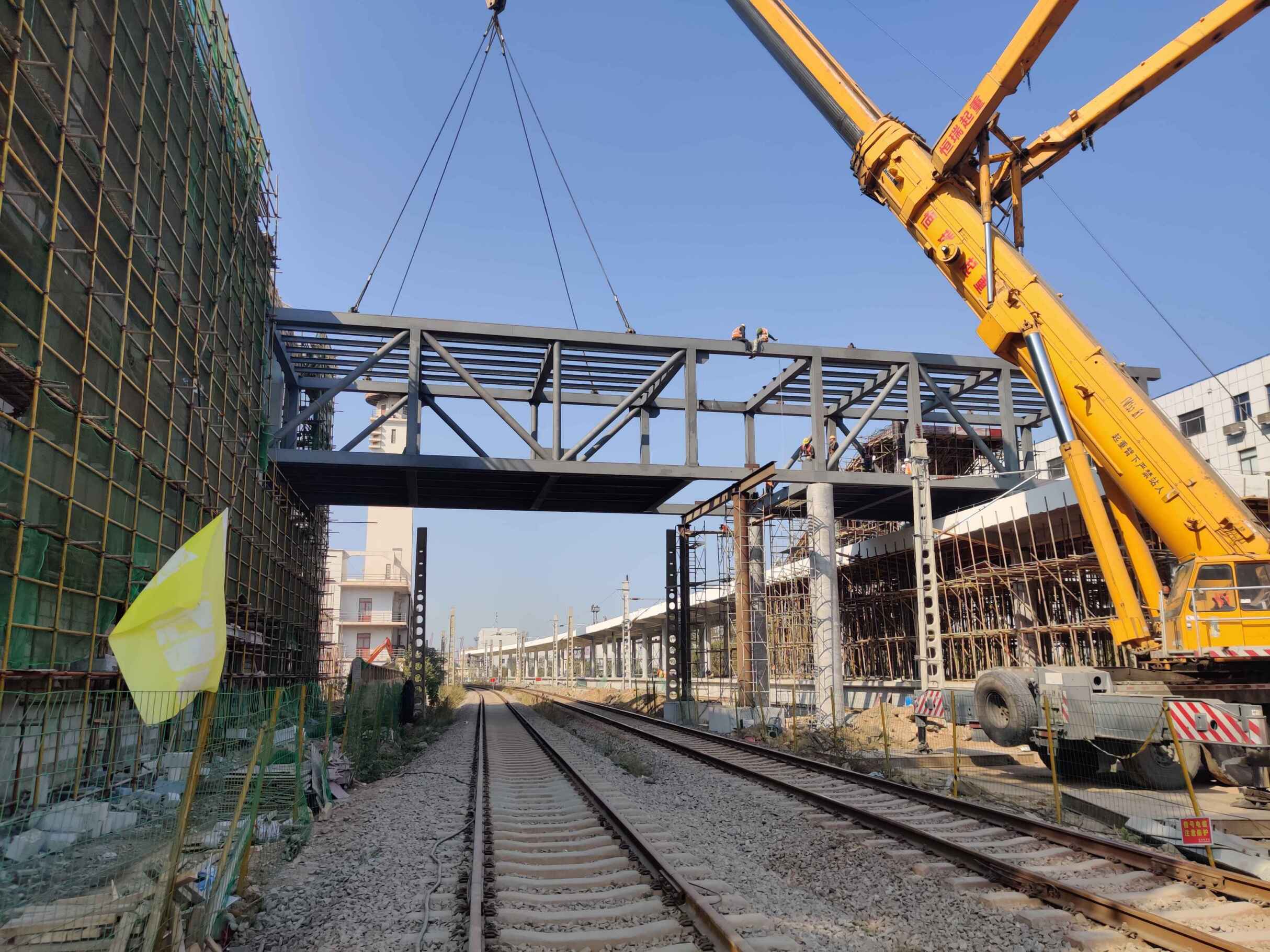 為確保此次天橋架設(shè)順利完工,市域列車各項目參建單位緊密配合,選派技術(shù)精湛、施工經(jīng)驗豐富的吊裝、焊接技術(shù)人員實施現(xiàn)場施工,安全防護員全程控制現(xiàn)場安全、工程監(jiān)理嚴(yán)格控制施工質(zhì)量。通過各方協(xié)同作業(yè),順利于規(guī)定時間內(nèi)完成天橋合攏,為市域列車12月通車運營奠定了堅實基礎(chǔ)。