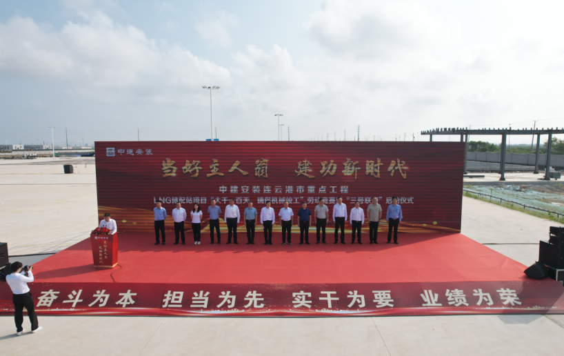 8月15日,連云港市交控物流集團LNG儲配站項目成功舉辦“大干一百天”勞動競賽啟動儀式及LNG儲罐外罐安裝完成儀式,全面掀起百日大干熱潮。江蘇省建設工會主任齊朝輝、副主任佘玉龍,連云港市委機關工委調研員方志祥,市交通控股集團總會計師、市交控物流集團董事長張廣兵,市交控物流集團副總經(jīng)理、工會主席劉超,中建安裝集團副總經(jīng)理劉文建,中建安裝石化工程公司黨委書記、執(zhí)行董事葉茂揚出席活動。