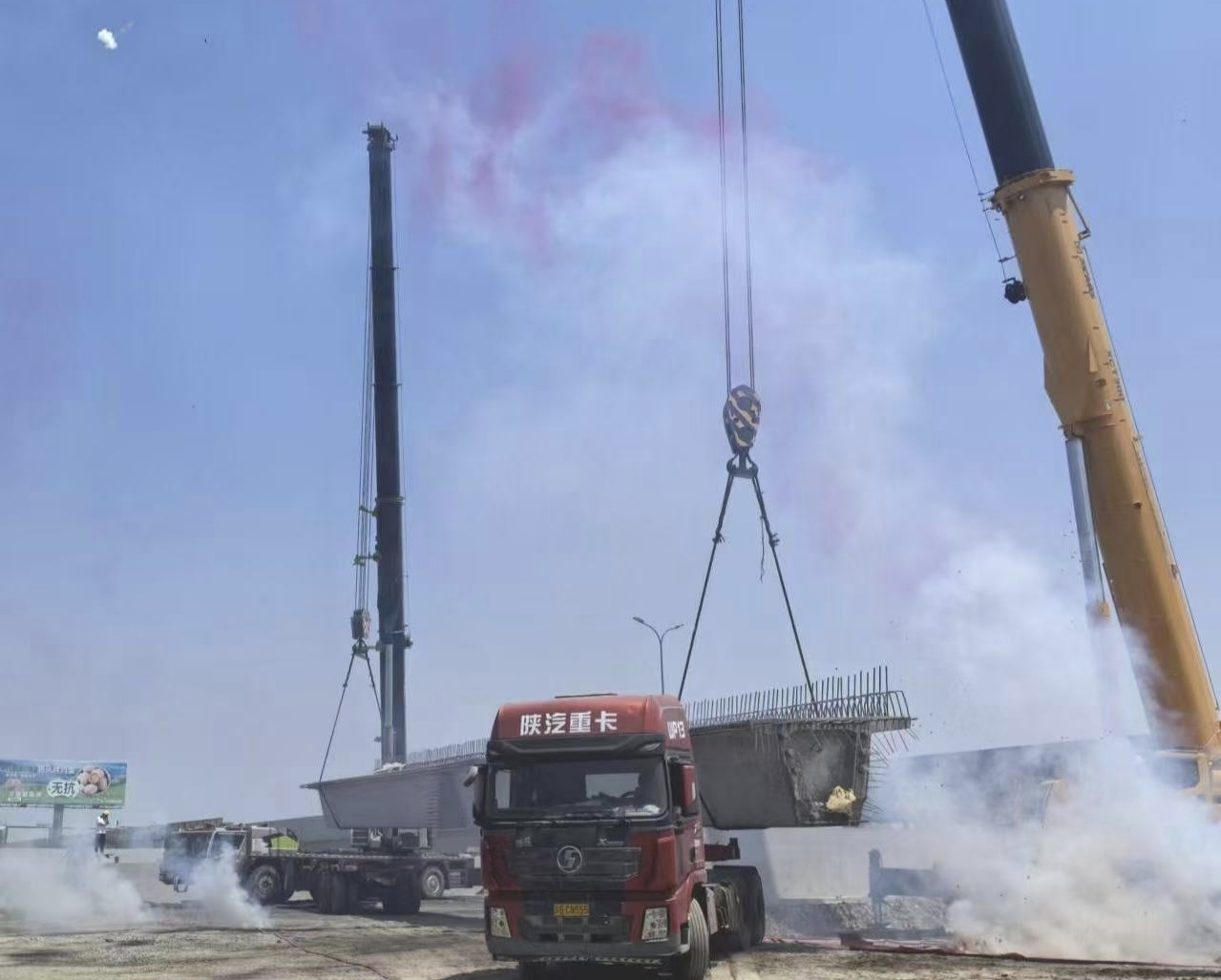 5月29日10時58分,瀛洲南路改造及南延工程(一期)寧海樞紐施工現(xiàn)場鞭炮齊鳴。在施工人員的精準(zhǔn)操控下,寧海樞紐右跨橋首片編號為2-7#的預(yù)制箱梁平穩(wěn)就位,標(biāo)志著該節(jié)點橋梁正式進(jìn)入上部結(jié)構(gòu)架設(shè)階段,為6月底完成全部箱梁安裝目標(biāo)奠定基礎(chǔ)。