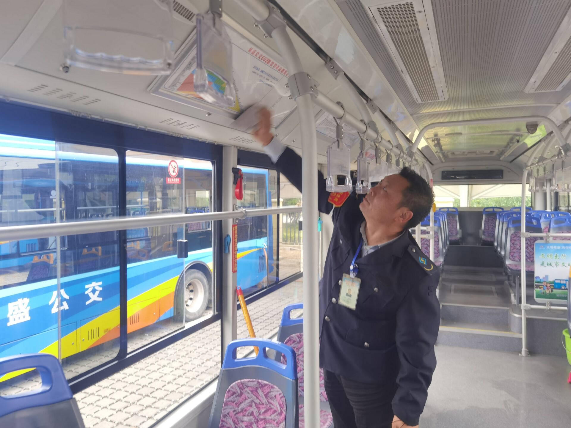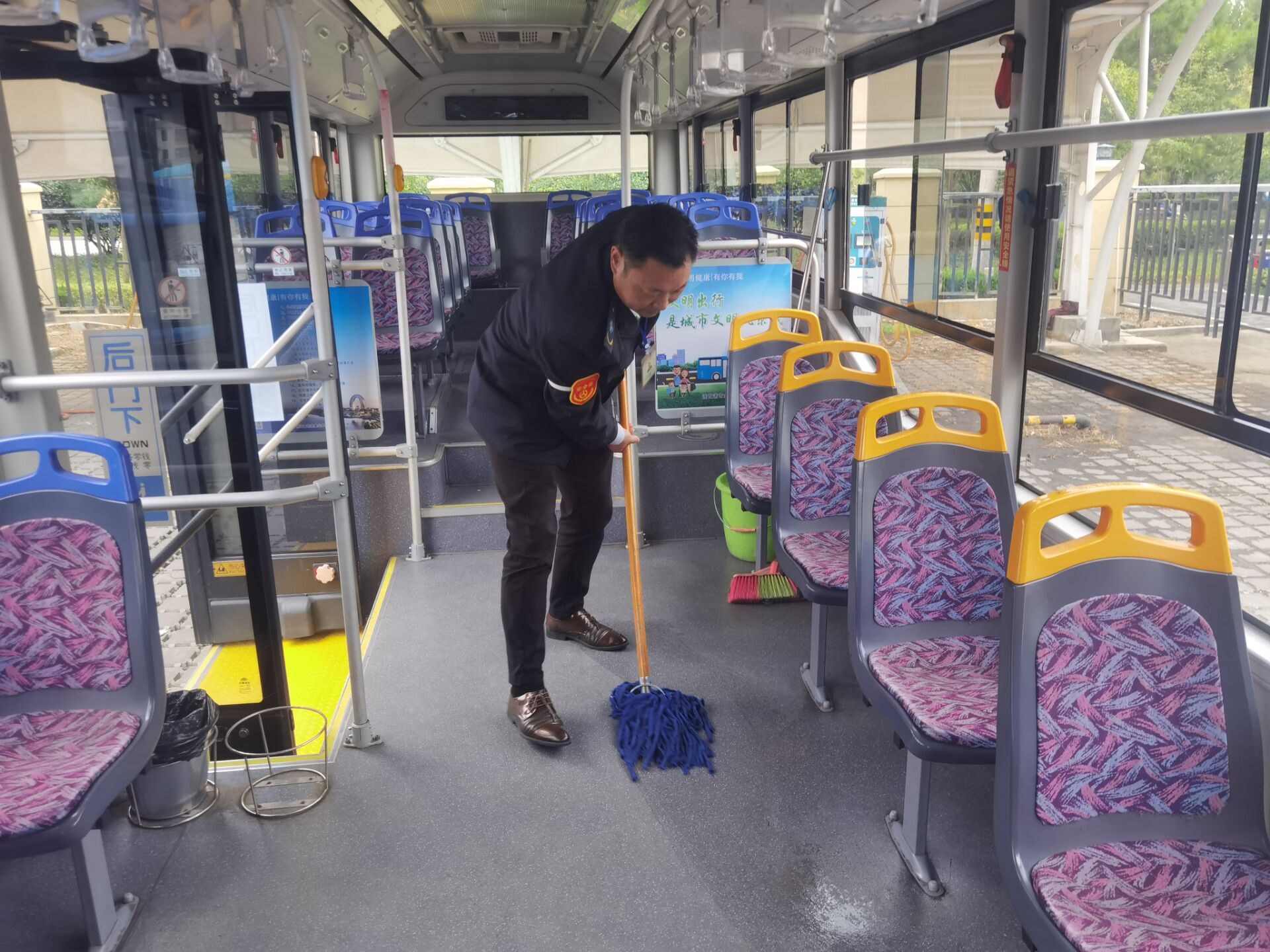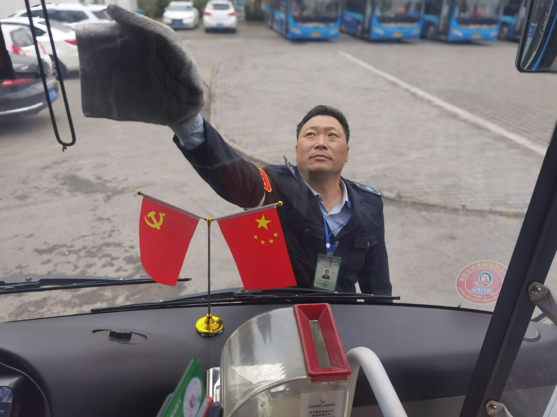 10月1日早上5點多,603路駕駛員樊耀聲就已經(jīng)來到公司,檢查過車輛安全后,打上一瓶消毒液,把車廂內(nèi)仔細消殺了一遍,打開了車里所有的窗戶,再用抹布把車廂座椅及扶手抹上一遍。等一切工序做完后,樊耀聲利用最后一點時間,急忙把從家里帶來的煎餅啃上幾口,便驅(qū)車駛?cè)?/span>602路發(fā)車區(qū),開始了一天忙碌的工作。當問到樊耀聲,“別人放假了,休息了,陪著孩子出去玩了,您心里難受嗎”?樊耀聲搖搖頭道:“假日里的公交車不能沒有人開,市民的安全出行需要有人來保障,祖國的繁榮富強,百姓的安居樂業(yè),需要我們公交人的堅守,才能讓更多的市民過上一個祥和的節(jié)日,孩子會理解的?!?/span>