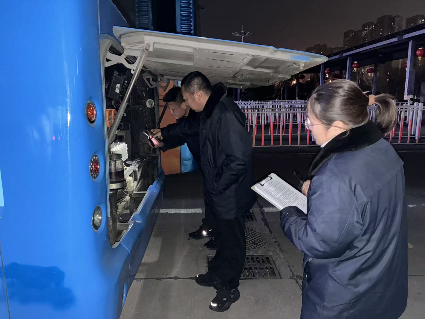 夜查小組深入各場(chǎng)站,對(duì)場(chǎng)站停放車輛進(jìn)行安全再檢查,重點(diǎn)排查電池絕緣、車載設(shè)備斷電情況。同時(shí),檢查人員對(duì)當(dāng)班駕駛員、夜間值班人員開展安全交代,要求駕駛員時(shí)刻牢記冬季行車要點(diǎn),嚴(yán)格執(zhí)行“一日三檢”制度,注意防疲勞駕駛;要求值班人員做好夜間巡查。